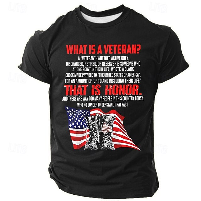 More information about Veterans Day Men's Patriot Patriotic Veteran Veterans T shirt Short Sleeve T shirt 3D Print Crew Neck Shirt Fashion Athleisure Street Sports Outdoor Daily Black Red Dark Green Summer Spring Clothing
