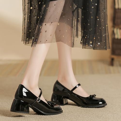 Women's Patent Leather Low Chunky Block Heel Mary Jane Pumps Fashion Classic Bowknots Round Toe Buckle Strap Work Pumps Casual Business Office Wedding Dress Shoes 5