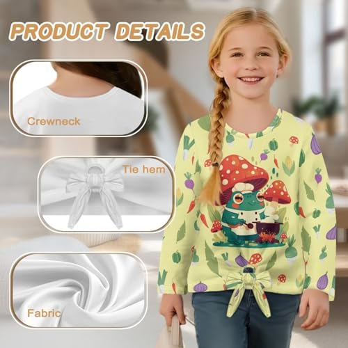 Girls Casual Tops Long Sleeve Comfy Crewneck Pullover Shirts Tops with Tie Hem Stretch Blouses 5-12 Years