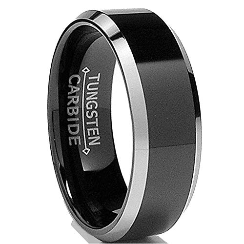 Why Choose 8MM Flat Top Two Tone Black Tungsten Ring Wedding Band Sizes 5 to 15?