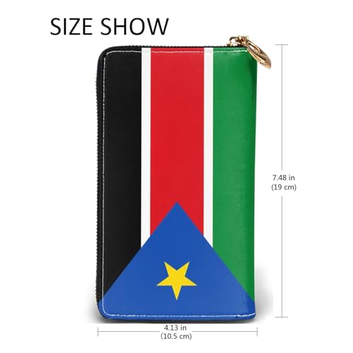 Flag of South Sudan Long leather wallet - with zipper - portable and waterproof, suitable for office, study and daily use