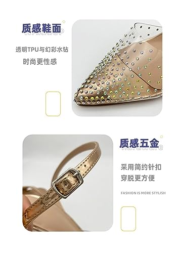 Oversized Women's Shoes, Transparent Rhinestone Pointed Thin Heeled High Heeled Sandals, Summer Size: 6-11(7.5) 4