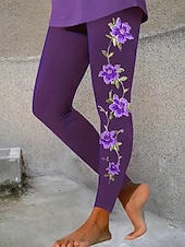More information about Women's Pants Trousers Leggings Cozy Leggings Streetwear Casual Full Length High Waist Floral Elastic Waist Print Breathability Comfortable Stretchy Vacation Street Daily Wear Purple Spring Fall
