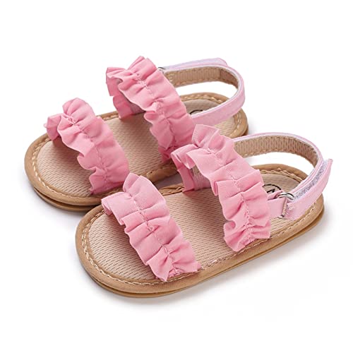 Summer Children Infant Toddler Shoes Girls Sandals Flat Bottom Non Slip Open Toe Solid Color Cloth Toddler Indoor Shoes 6