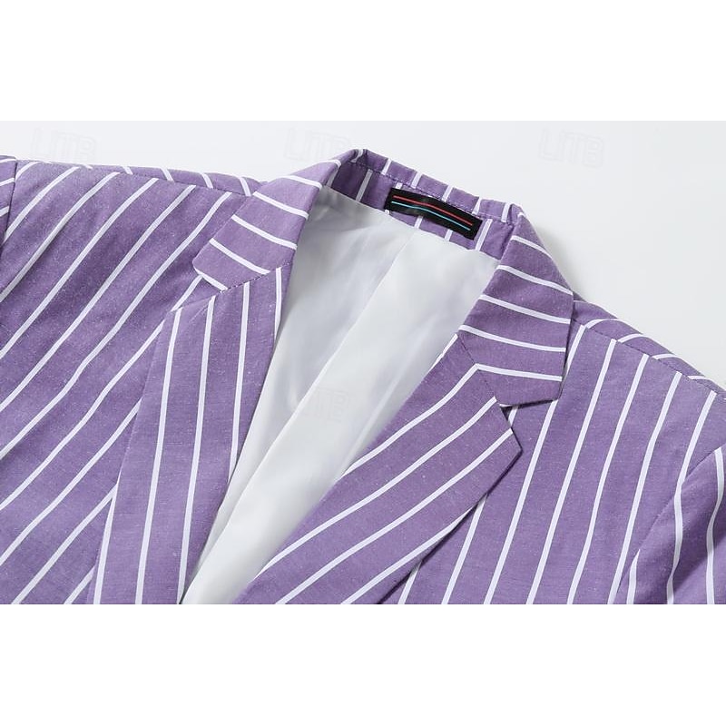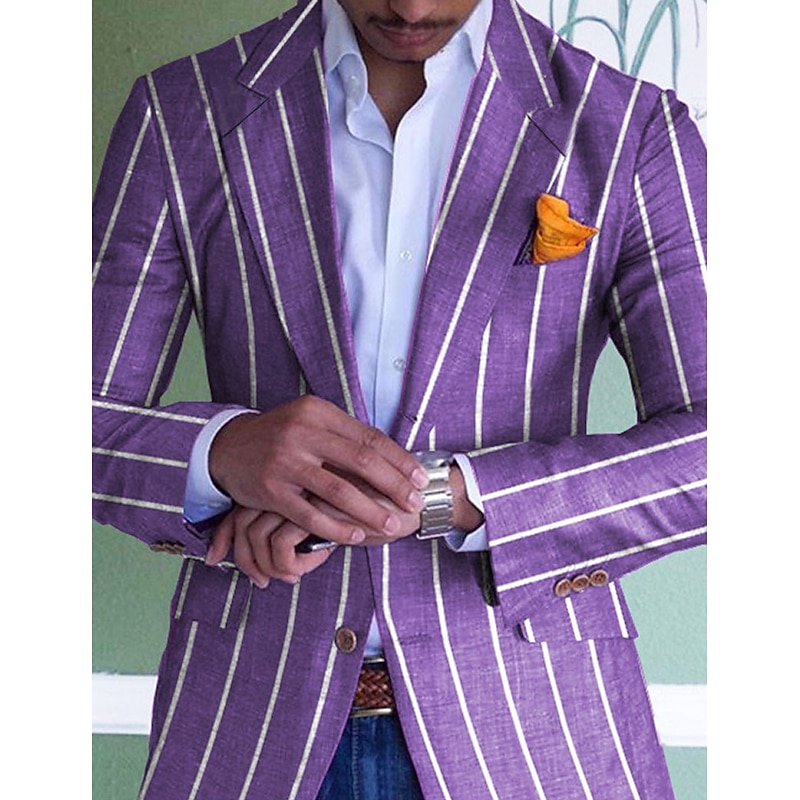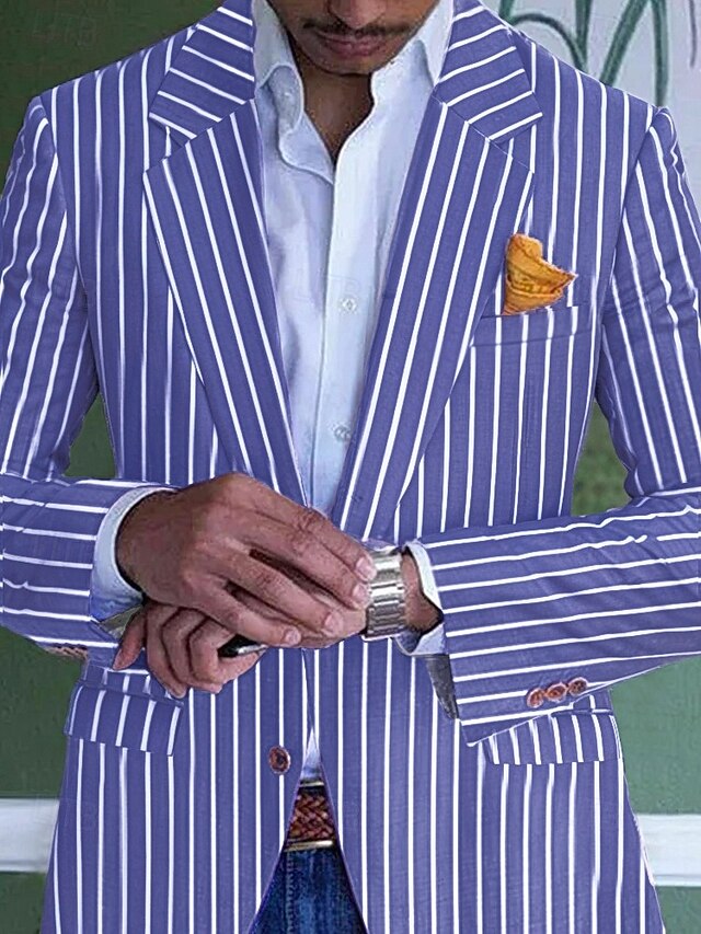 More information about Men's Graduation Blazer Formal Evening Wedding Party Birthday Party Fashion Casual Spring & Fall 95% Polyester 5% Spandex Stripes Pocket Casual / Daily Single Breasted Blazer Pink Blue Orange Green