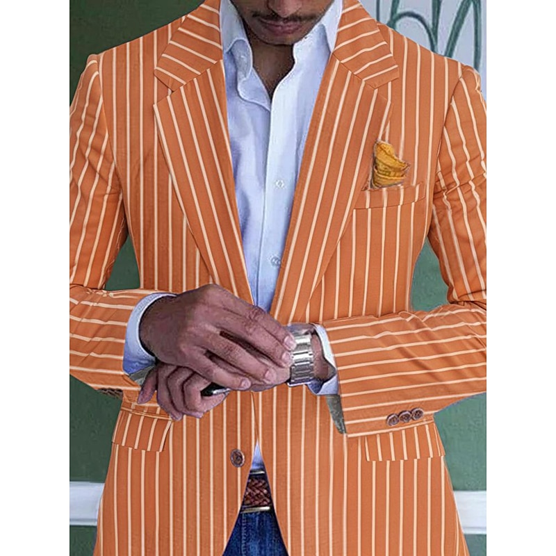 Men's Graduation Blazer Formal Evening Wedding Party Birthday Party Fashion Casual Spring &  Fall 95% Polyester 5% Spandex Stripes Pocket Casual / Daily Single Breasted Blazer Pink Blue Orange Green 14