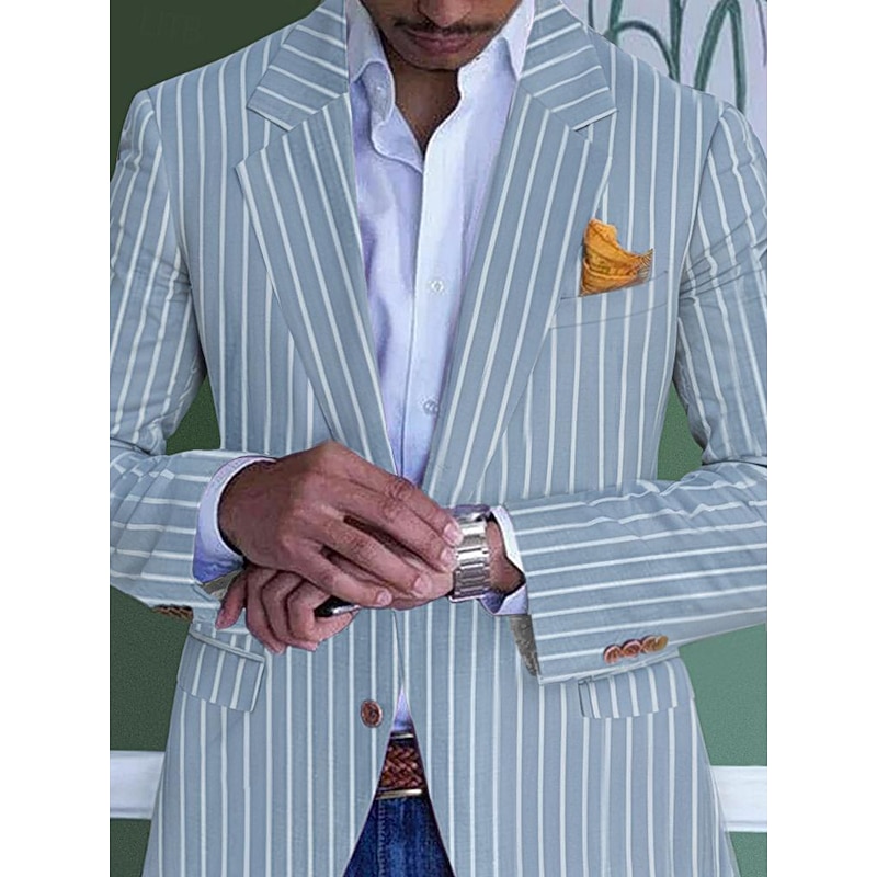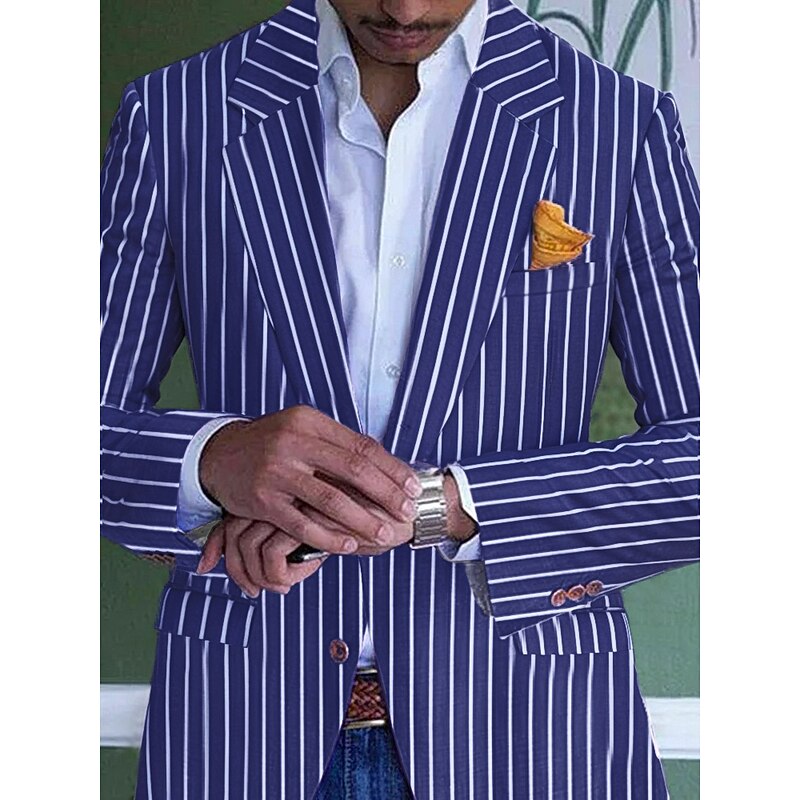 Men's Graduation Blazer Formal Evening Wedding Party Birthday Party Fashion Casual Spring &  Fall 95% Polyester 5% Spandex Stripes Pocket Casual / Daily Single Breasted Blazer Pink Blue Orange Green 22