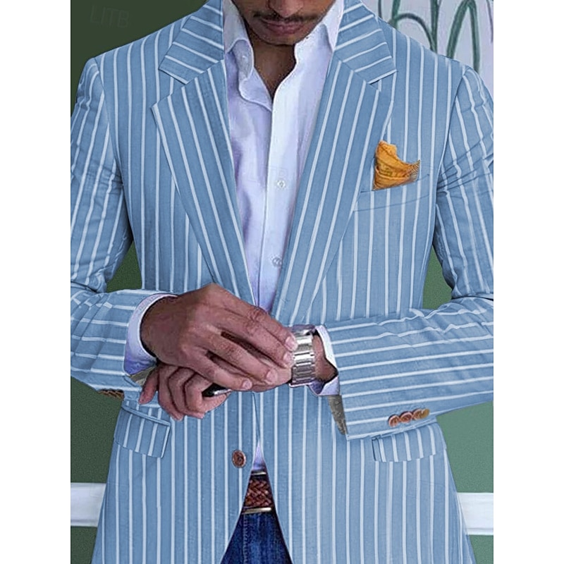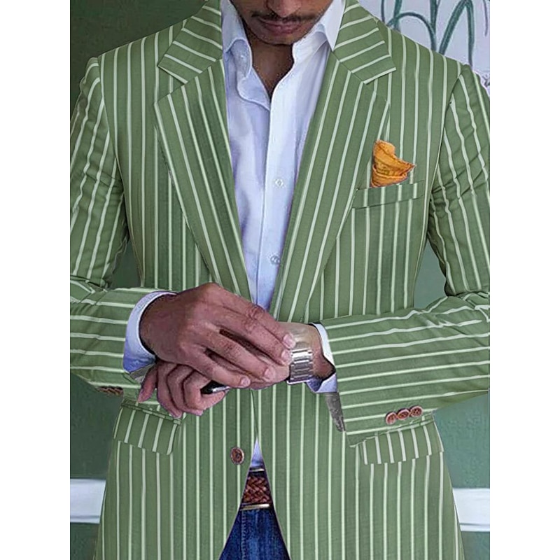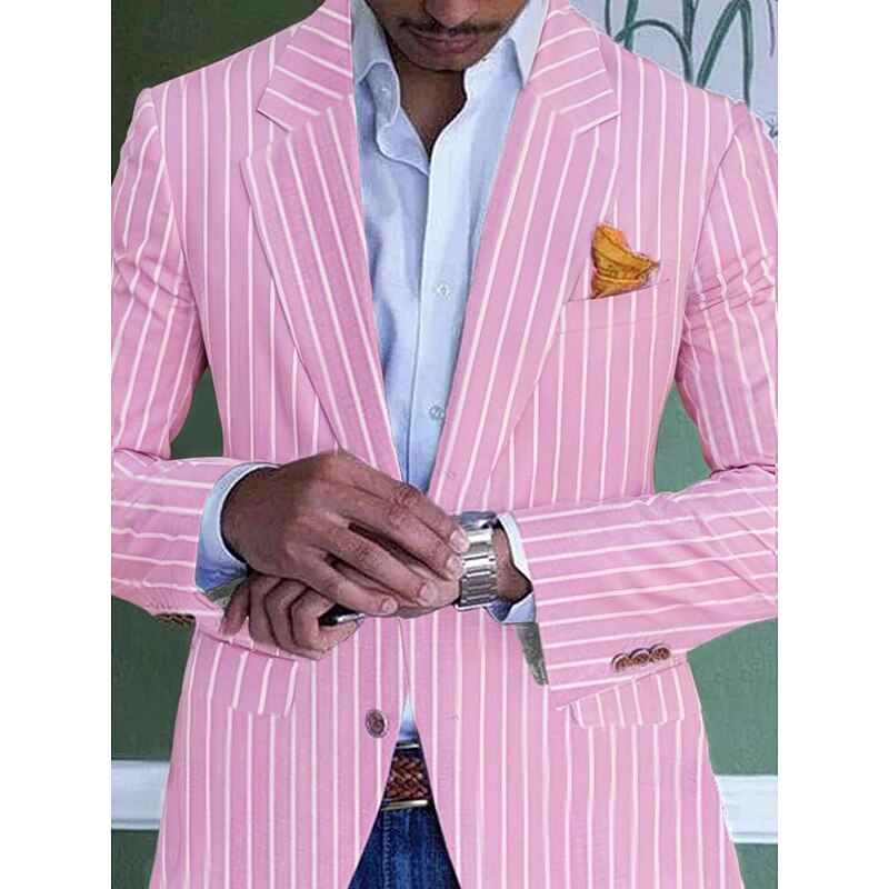 Men's Graduation Blazer Formal Evening Wedding Party Birthday Party Fashion Casual Spring &  Fall 95% Polyester 5% Spandex Stripes Pocket Casual / Daily Single Breasted Blazer Pink Blue Orange Green 25