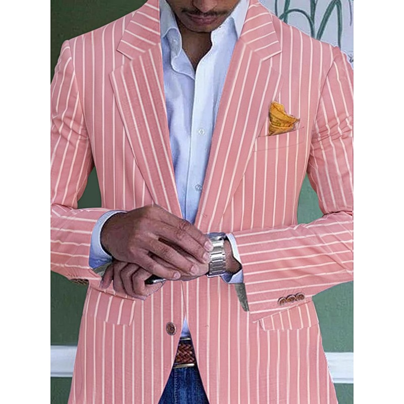 Men's Graduation Blazer Formal Evening Wedding Party Birthday Party Fashion Casual Spring &  Fall 95% Polyester 5% Spandex Stripes Pocket Casual / Daily Single Breasted Blazer Pink Blue Orange Green 11