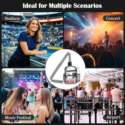Care instructions: Avoid high heat, direct sunlight, and sharp objects.Origin: ImportedJoin Prime Cancel anytimeClear Crossbody Bag Stadium Approved: The transparent stadium bag allows you to see the contents without opening it, helping you to pass through security quickly and easily at concerts, airports, races, stadiums and other outdoor eventsWaterproof PVC: The clear crossbody bag is made of superior waterproof PVC material to keep your items dry at all times. It is easy to clean and can be wiped directly with a damp cloth. Sturdy stitching ensures the durability of the crossbody bag5 Pockets, Ample Space: With the 5 pocket design, there is more space for your mobile phone, cosmetics, wallet, passport, water and more. Smooth zip prevents items from falling out and keeps your belongings secure in the clear stadium bagLightweight and Portable: The clear concert bag measures 9.45 x 6.69 x 3.94 inches and weighs 285 g/0.62 lbs. This clear bag for stadium events is compact and lightweight. It is pleasant to wear and suitable for carrying on the goSturdy and Adjustable Shoulder Strap: The clear stadium bags for women are designed with 2 D-rings so you can easily attach the shoulder strap. Its length can be adjusted from 31 inches to 56.6 inches to suit your body type or activity Perfect for everyday use. supreme materials and excellent craftsmanship ensure long-lasting durability.