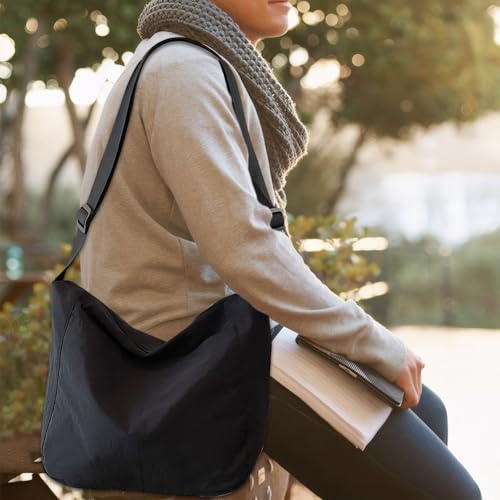 Hobo Crossbody Bags for Women, Black Canvas Crossbody Bag, velvety And Washable, Zipper Closure, Large Capacity Design for Work, Travel, Shopping And Beach Vacation, with 1 Black Card Holder
