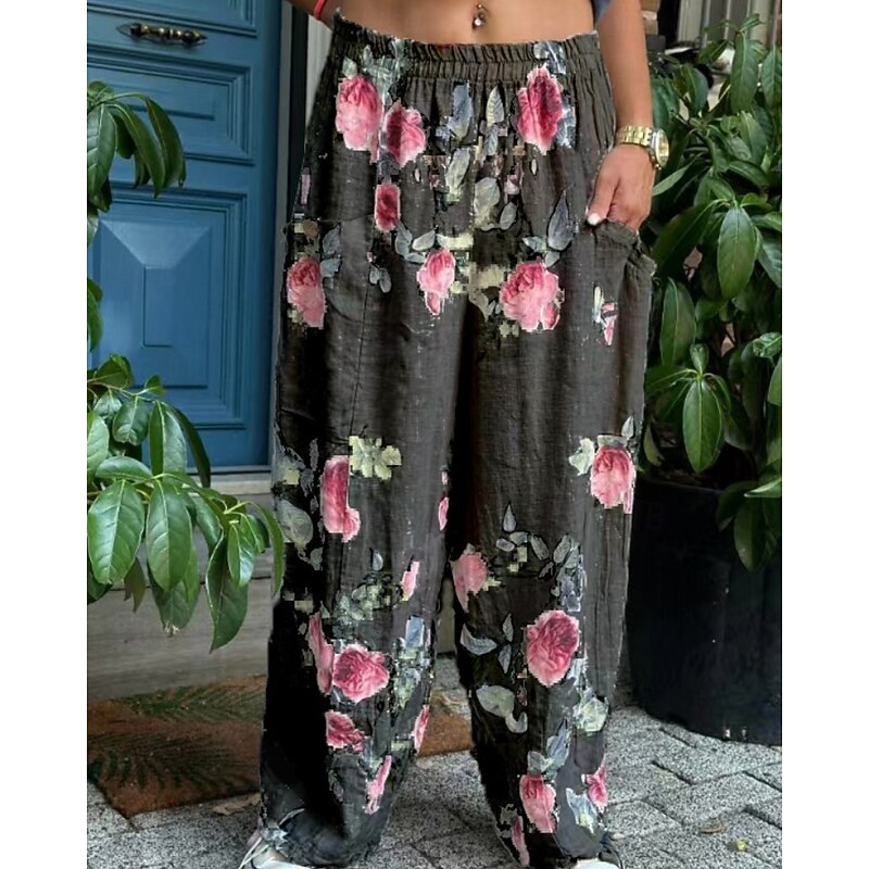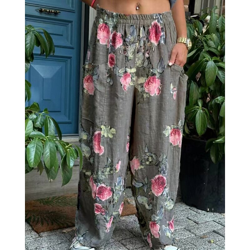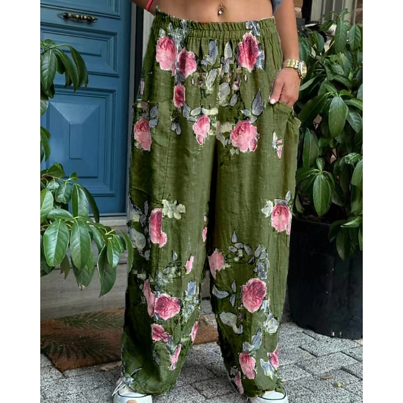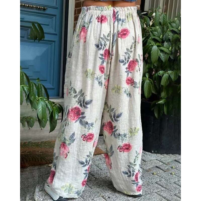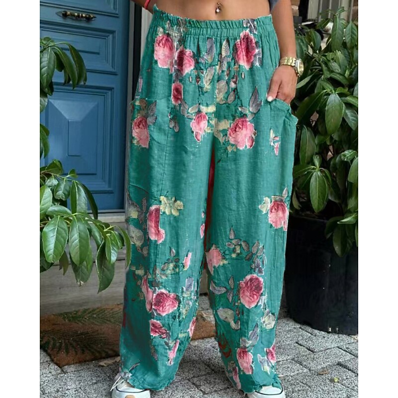 Why Choose Women's Cotton Linen Pants Slacks Streetwear Casual Full Length Natural Flower Pocket Elastic Waist Printing Comfy pleasant Holiday Weekend Peacock Blue Grey Black White Summer Regular Fit?