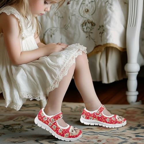 Puppy Print Mary Jane Shoes for Girls Toddler Dress Shoes Breathable Running Tennis Sneaker School Mesh Barefoot Shoes