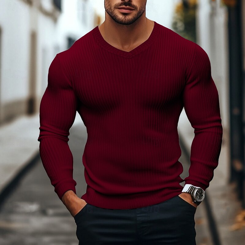 More information about Men's T Shirt Muscle Shirt Ribbed Knit tee Tee Top Long Sleeve V Neck Summer Plain Pit Strip Fashion Designer Basic Ribbed Vacation Street Going out Black White Burgundy Top Tee for Men
