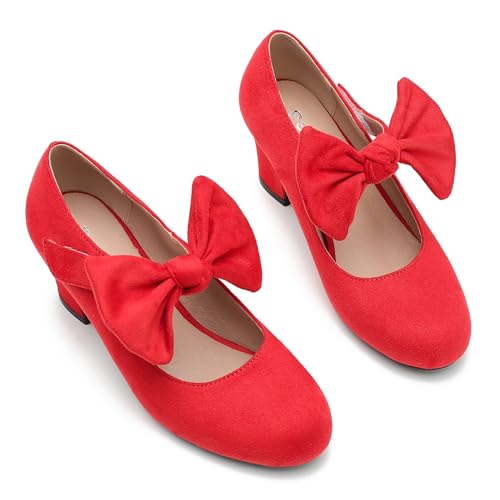 Sole material: RubberOuter material: SyntheticClosure type: Hook & LoopWomen's Chunky Heel Bow Pumps are made of finest Synthetic Materials.Sturdy Chunky Heel measures approx 2.36/6cm.These high grade pumps Features: Closed Round Toe, block heel, ankle strap with a big removable bow, adjustable hook and loop fasteners closure dance pumps for women.Perfect paired with dresses, skirts, shorts, jeans, outfits and any daily or formal wearing.This elegant pair of heels is ideal for weddings, Party Event, Office Work, Casual wear, Street Shopping and every other special occasion. Whether it's Valentine's Day, Christmas, New Year, Mother's Day, wedding anniversary or birthday, these heels are your preferred gift. Perfect for everyday use. High quality materials and excellent craftsmanship ensure long-lasting durability.