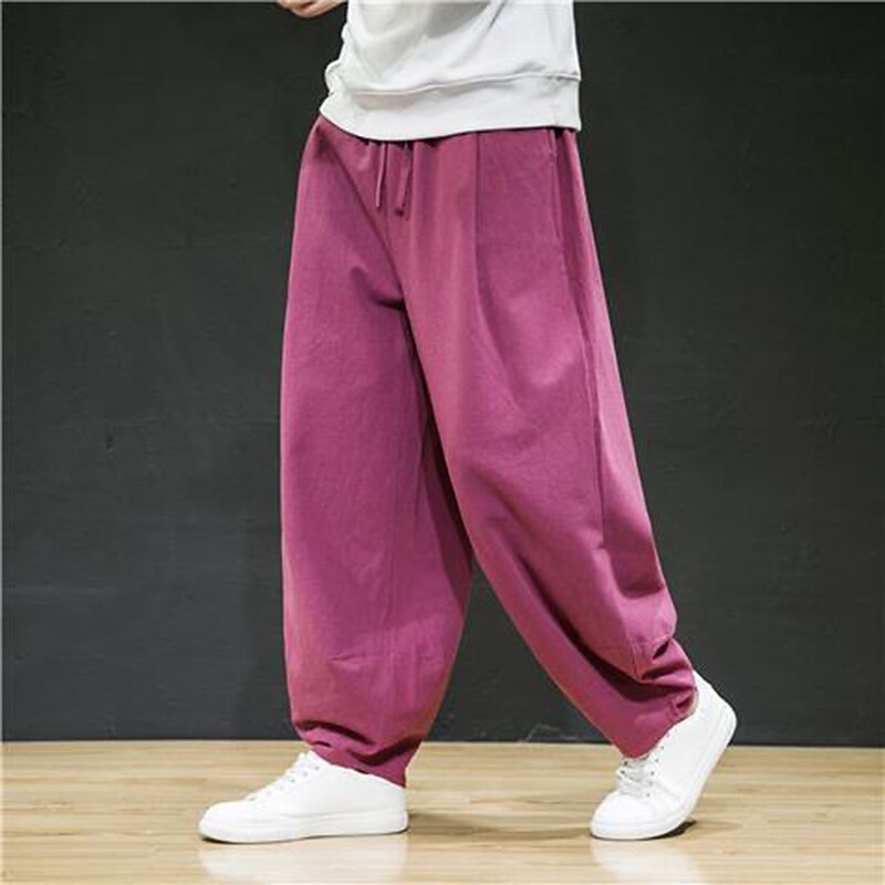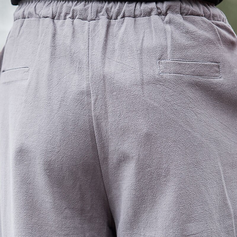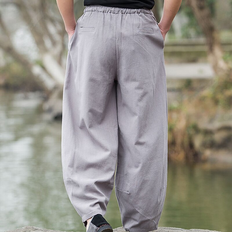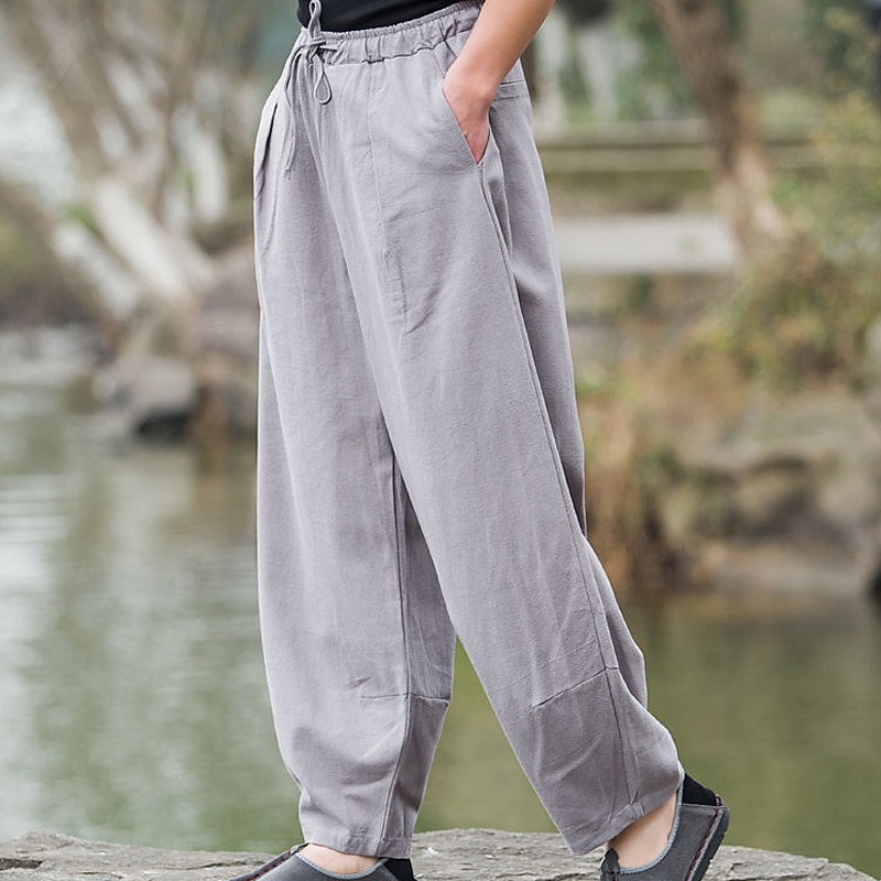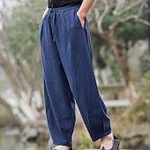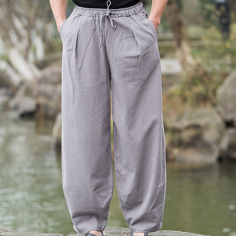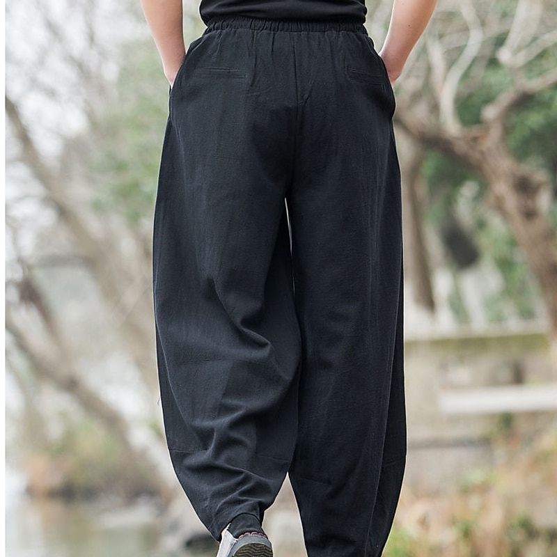 More information about Men's Linen Pants Trousers Summer Pants Bloomers Baggy Pants Pocket Elastic Waist Plain Breathable Casual Daily Streetwear Ethnic Style Black Navy Blue Inelastic