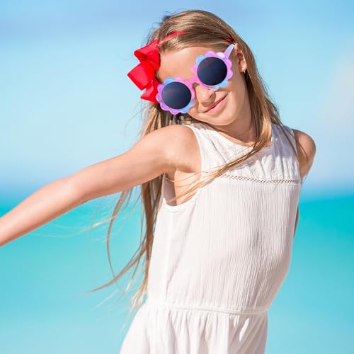 • Package Include: 3 pieces kids round flower sunglasses in different color. cute flower shape and vivid colors make kids eye-catching in the crowd.