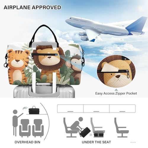 Weekender Bags Travel Duffel Gym Bag Tiger Lion Monkey Carry on Overnight Tote Bag with Toiletry Bag for Airplane Travel Trip Gym Yoga