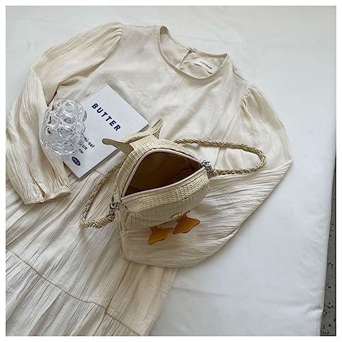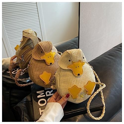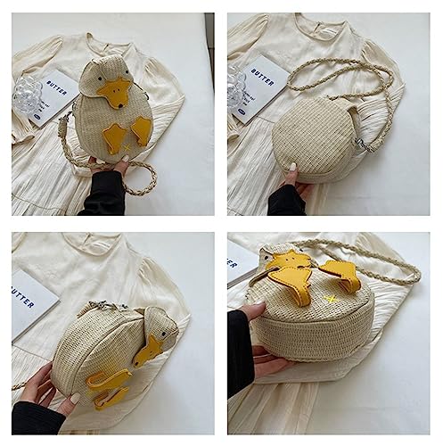 Straw Duck Purse 3D Cartoon Shoulder Bag Animal Coin Purse Clutch Wallet for Women Summer 3