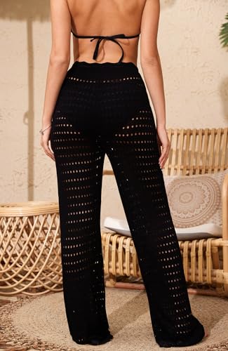 - Features: crochet, tie front, drawstring elastic waist, see through, high waisted, loose, wide leg, beach coverup for women 2024