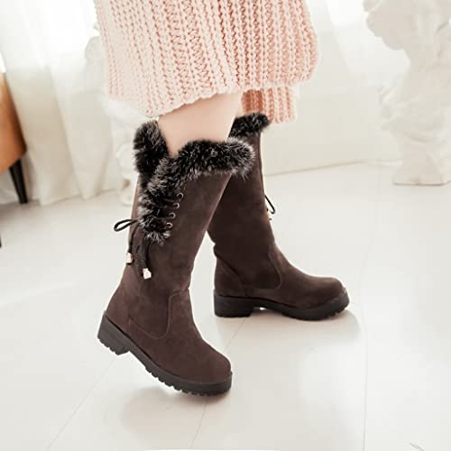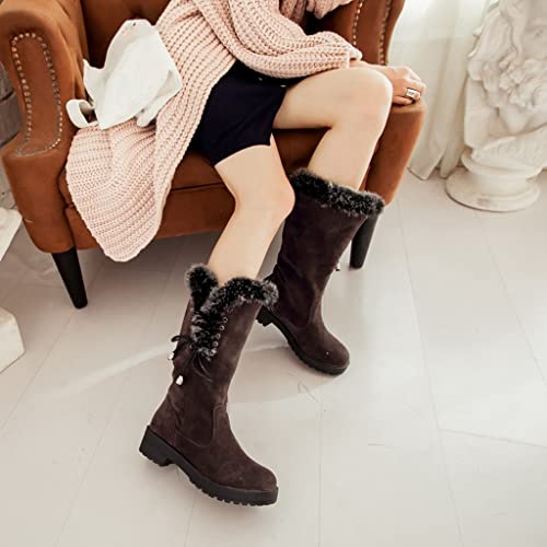 Women's Winter heated Furry Mid Calf Snow Boots Tall Lace Up Fur Lined Mid Calf Wide Calf Snow Boot