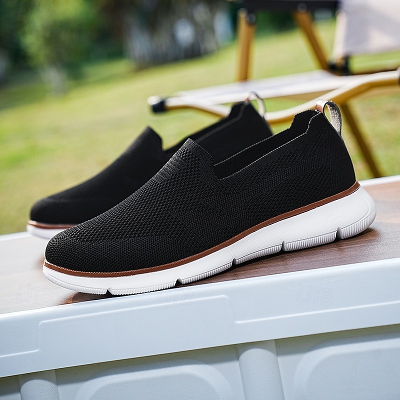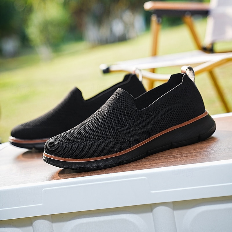 HOT ! Men's Slip-On Knit Sneakers, Breathable Mesh Upper with Comfortable Fit, Casual Lightweight Shoes for Everyday and Outdoor Activities