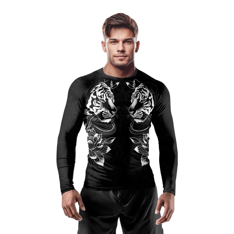 Tiger Men's Long Sleeve Rash Guard – Jiu Jitsu Rash Guards for Men, BJJ Compression Shirt for MMA & Grappling