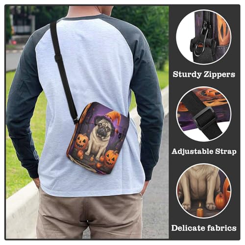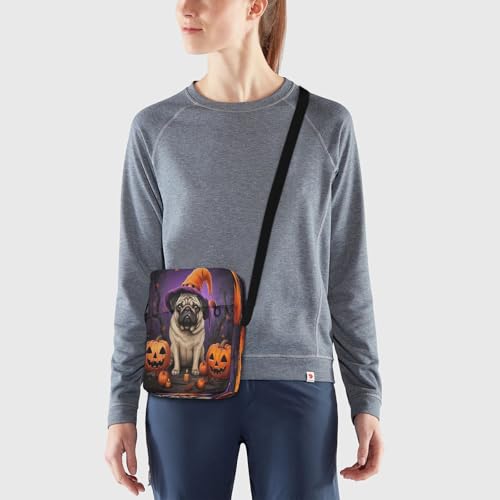Crossbody Bag Pug Dog Halloween Pumpkin Messenger Bag for Women Men Purse Shoulder Bag Satchel Bag with Adjustable Strap 202a1075 5