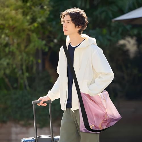 Marble Pink Gold Crossbody Bag for Women Men with Adjustable Strap PU Leather Shoulder Hobo Purse Bag 20849745