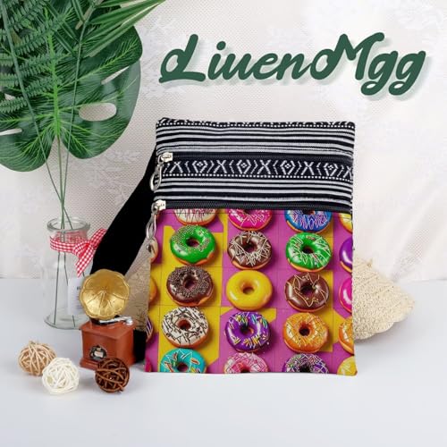 Colorful Donuts Messenger Bag Small Ethnic Pattern Printed Adjustable Strap Crossbody Zipper Pouch Colorful Donuts Phone Organizer Wallet Cute Shoulder Handbag for Women-1