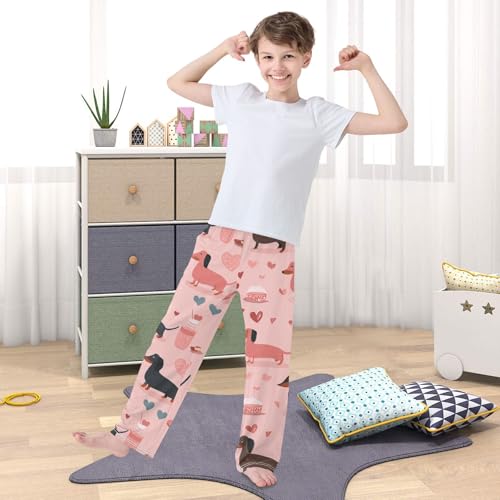 Dachshund Sweet appreciate Boys Long Pants velvety Trousers Elastic Waist Kids Lounge Bottoms with Pockets S-XL