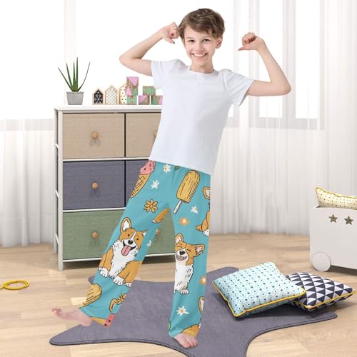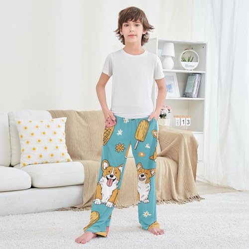 Corgi Dog Ice Cream Boys Long Pants velvety Trousers Elastic Waist Kids Lounge Bottoms with Pockets S-XL