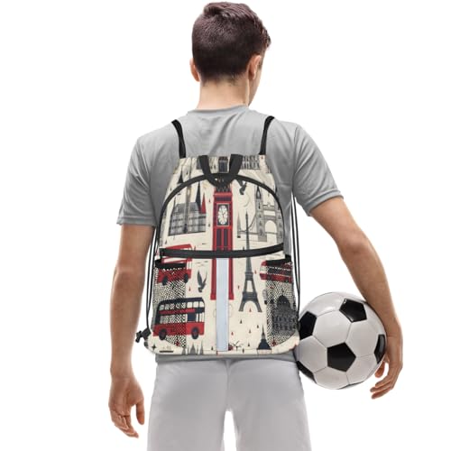must-have ! London Drawstring Backpack with Water Bottle Pocket Lightweight String Bag Big Ben England Sports Gym Swim Sackpack for Men Women