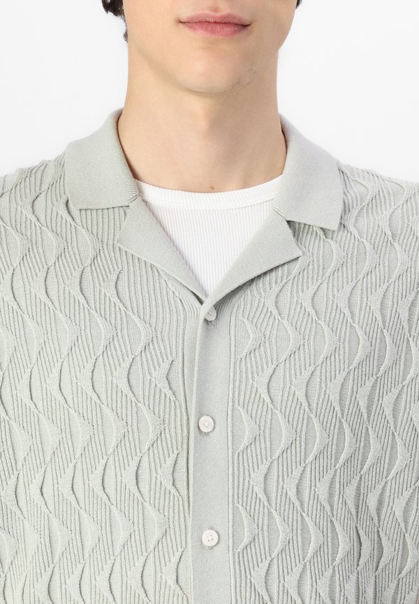 Geometric Stitch Button-Through Sweater Polo - Cardigan - mineral gray 2