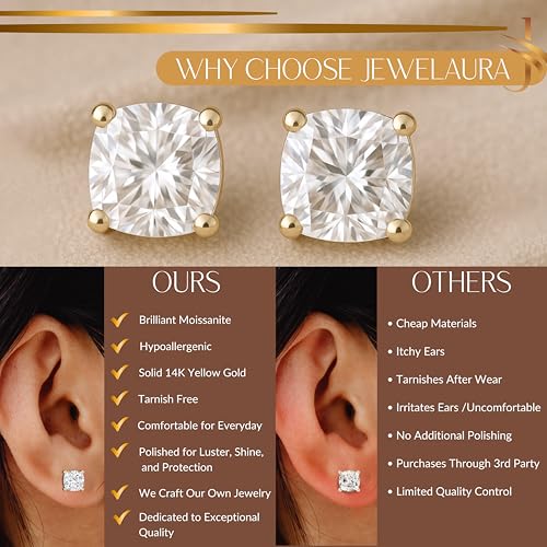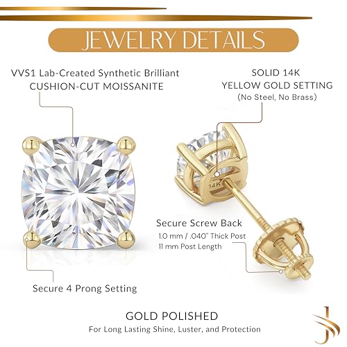 14K Solid White or Yellow Gold Lab Grown Moissanite Stud Earrings – Round, Oval, or Cushion Cut – Screw Back or Push Back – Luxury Fine Jewelry Gift for Women – by Jewelaura