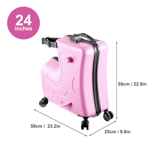 Effortless : With multi-directional smooth swivel wheels, kids ride on luggage provides a silent dragging experience. The silent 360 wheels reduce noise disturbance during travel, making every smoother and more peaceful for both kids and parentsEnsured Child Safety: With seat belts, handlebars, and pedals, our kids luggage prioritizes safety. A Three-digit Combination Lock ensures utmost security, protecting your child and their belongingsFamily-Friendly Design: The suitcase's closed space on both sides provides ample storage for parents and children, making it an ideal luggage for family travel. Please remember to check your bags when taking a flight.Easy Travel for Kids: The L-shaped design of our ride on kids suitcase allows your children to sit and ride during long trips, enabling a pleasant while reducing the load on parents. This smart luggage accessory provides an effortless travel experience for kids, adding a fun element to every adventureExcellent Choice for Little Travelers: Let kids enjoy every travel with this ride on luggage, an ideal choice for birthdays, Christmas, Year, Halloween or International Children's Day. It's a ideal choice for your little travelers and children of friends or family Perfect for everyday use. finest materials and excellent craftsmanship ensure long-lasting durability.