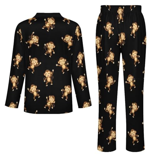 Mens Pajamas Set V Neck Long Sleeve Sleepwear Button Down Pjs Set Loungewear Nightwear