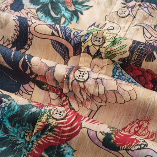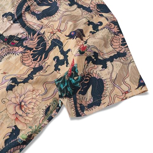 Men's Hawaiian Shirt 100 Cotton Dragon Dance and Cherry Blossoms Short-Sleeve Aloha Summer Beach Button-Down Shirts