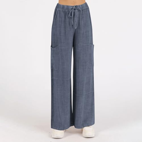 HOT ! Palazzo Pants for Women Casual Baggy High Waist Wide Leg Drawstring Cargo Pant with 6 Pockets Casual Work Trousers