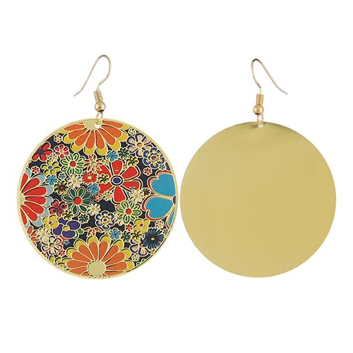 Gold Round Flower Disc Drop Dangle Earrings for Women Girls with Charms Boho Circle Ball Disk Blossom Spring Big Statement Dangling Hook Stud Earring Exaggerated Y2K Jewelry Gifts Christmas Festival Party