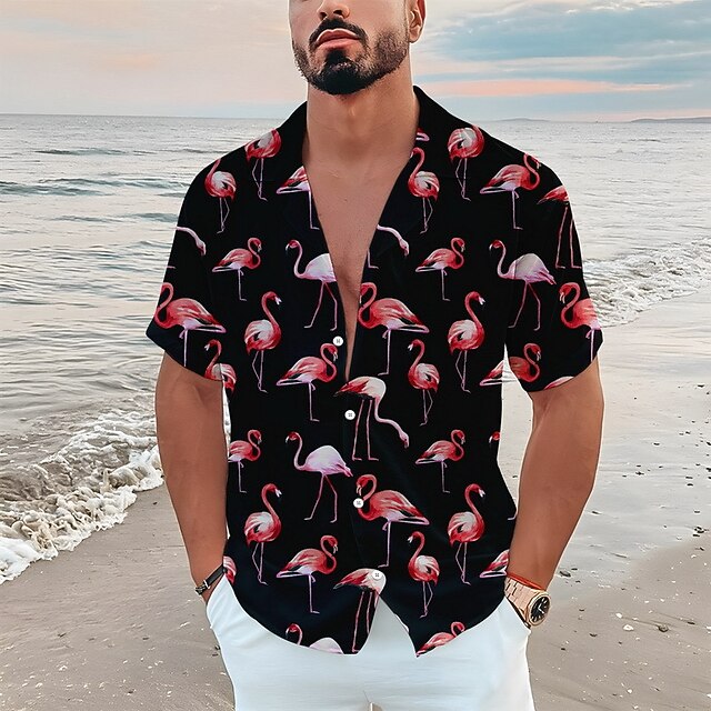 Why Choose Men's Floral Flamingo Tropical Shirt Summer Hawaiian Shirt Aloha Shirt Short Sleeve Shirt Turndown Tropical Fashion Streetwear Casual Hawaiian Holiday Blue-Green Black White S M L?