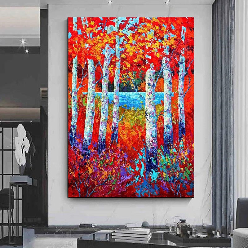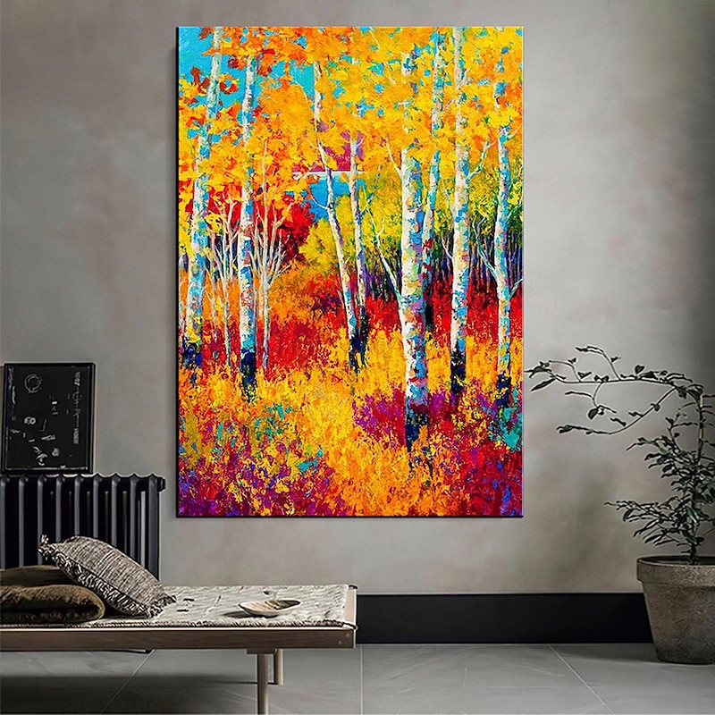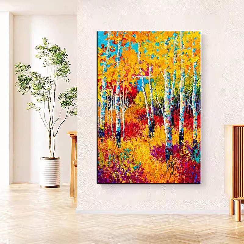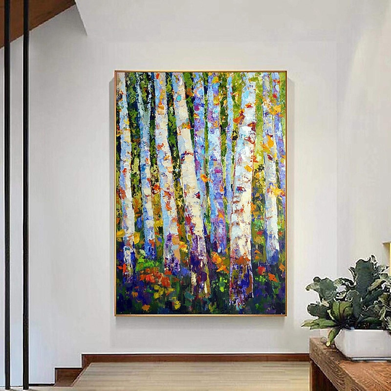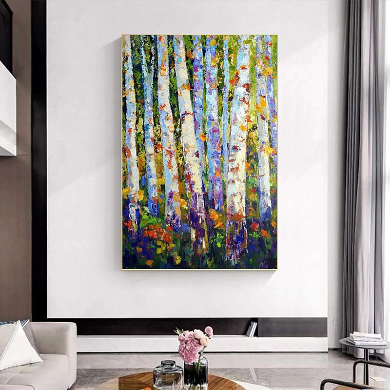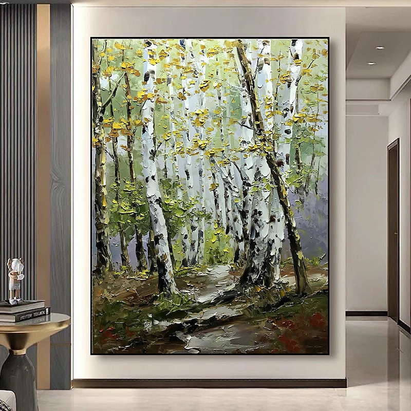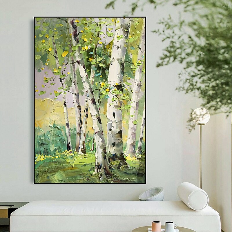 Handmade Hand Painted Oil Painting Wall Art Spring Birch Forest Painting On Canvas latest Texture Green Tree Painting Decor Rolled Canvas No Frame Unstretched
