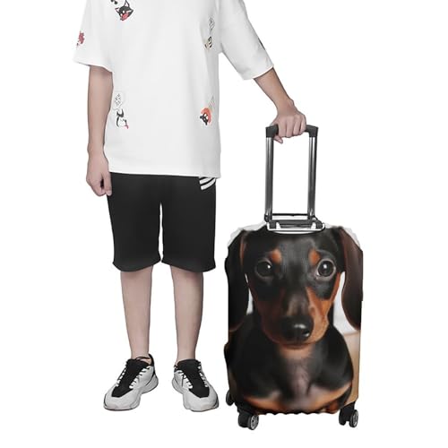 Luggage Covers: Our Cute Wiener Sausage Dog luggage covers protect your luggage from dust and scratches. The chic patterned design also helps you spot your belongings amidst a cluttered luggage.Material: The luggage covers are made of highly stretchy polyester fabric, which is stretchy, durable, and wear-resistant. They're washable and easy to care for.Easy to Install and Remove: The top features two openings for the telescopic handle and carry handle, and zippers on both sides. The unique design makes it easy to install and remove.Size : 4 sizes available to fit almost any luggage. SIZE S: fit 19-21 inch luggage; SIZE M: fit 22-24 inch luggage; SIZE L: fit 26-28 inch luggage; SIZE XL: fit 30-32 inch luggage.Note: 1. We only sell luggage covers; we don't sell regular suitcases. 2. The height of the luggage cover does not include the wheels, and the width does not include the handles. We recommend measuring your luggage at the maximum of this size and ordering the next size up. Perfect for everyday use. finest materials and excellent craftsmanship ensure long-lasting durability.