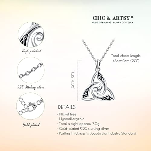 CHIC ARTSY 925 Sterling Silver Irish Trinity Celtic Knot Necklaces Oxidized Good Luck Triskele Celtic Knot Fine Jewelry Goddess Of The Moon Pendants Necklace For Women Grandma, Mom, Aunt, Sister, Niece 1
