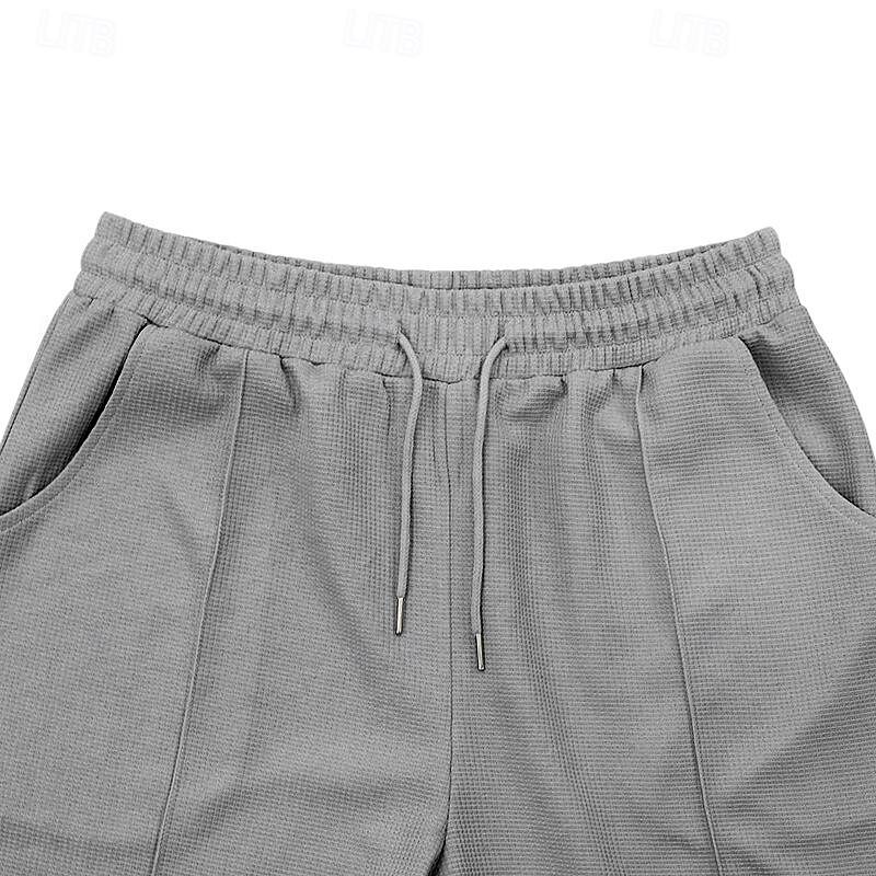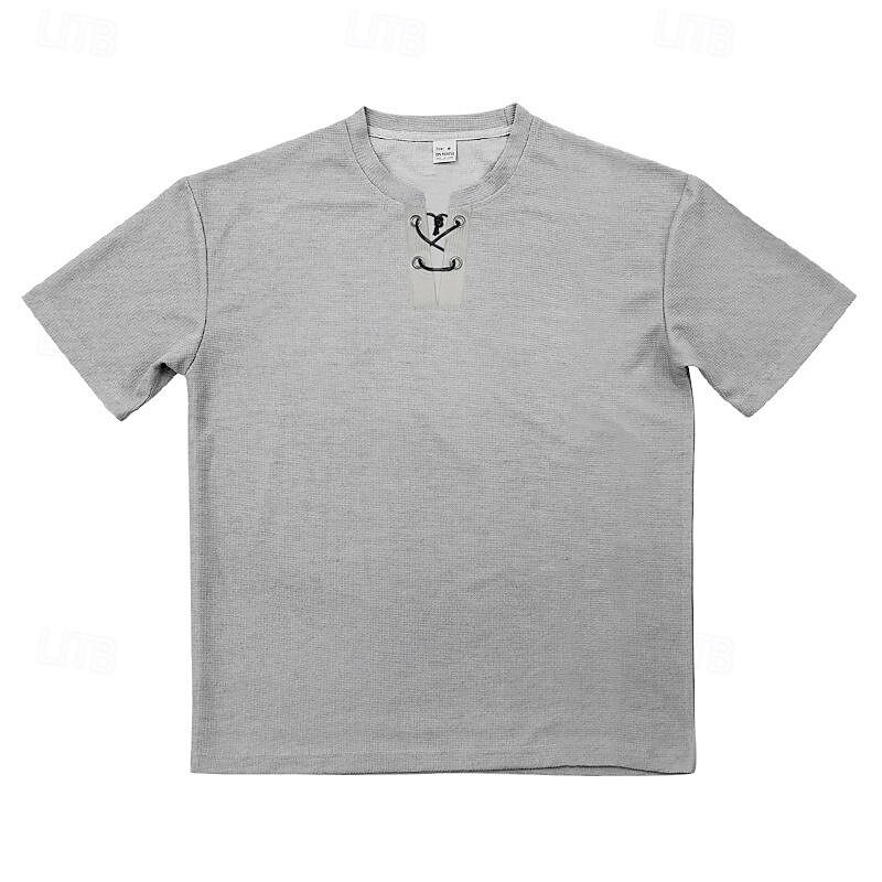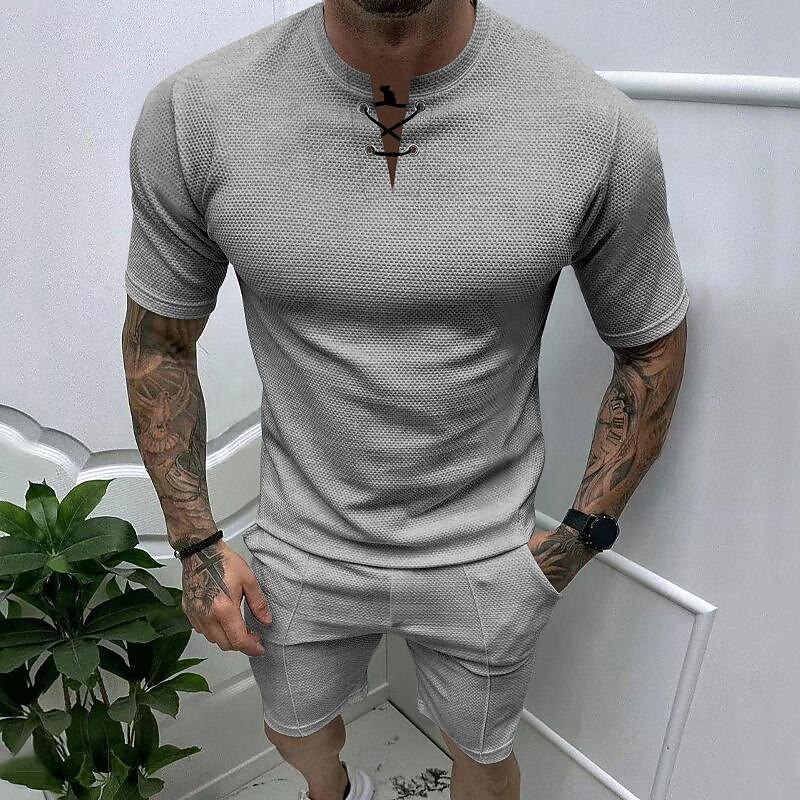 More information about Men's Waffle Tee Waffle Shirt T Shirt T-shirt Suits Short Sleeve Crew Neck Spring & Summer Plain Fashion Designer Basic 2 Piece Vacation Street Going out Black White Royal Blue Top Tee for Men