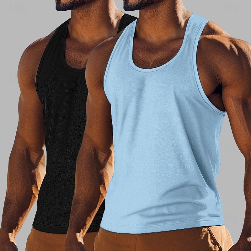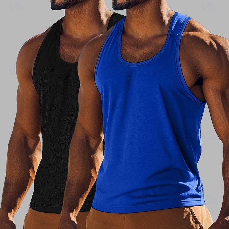 More information about Men's Tank Top Vest Undershirt Sleeveless Shirt Sleeveless Crewneck Scoop Neck Summer Solid Color Plain Fashion Classic Casual 2 Piece Street Casual Sports Blue+Light Blue Royal Blue+Black Army Green