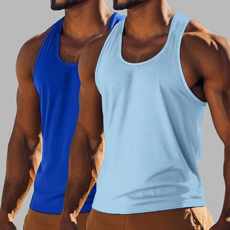 Men's Tank Top Vest Undershirt Sleeveless Shirt Sleeveless Crewneck Scoop Neck Summer Solid Color Plain Fashion Classic Casual 2 Piece Street Casual Sports Blue+Light Blue Royal Blue+Black Army Green 2