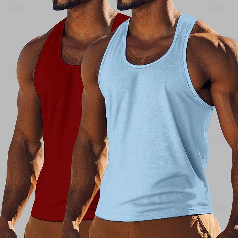 Men's Tank Top Vest Undershirt Sleeveless Shirt Sleeveless Crewneck Scoop Neck Summer Solid Color Plain Fashion Classic Casual 2 Piece Street Casual Sports Blue+Light Blue Royal Blue+Black Army Green 12