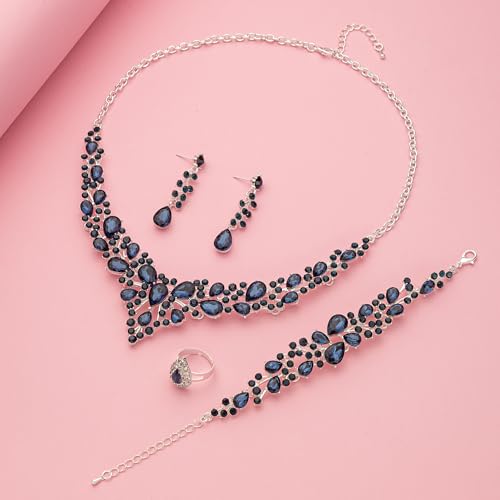 Material: CrystalMetal type: AlloyGem type: CrystalSpecification: Brand Name: Paxuan. Material: Silver / Gold Plated Zinc Alloy(environmental friendly and hypoallergenic) + Austrian Crystal. Size: Necklace: 16'' + 2'' Extension. Earrings: 2.5'' in length, 0.7'' in width. Bracelet: 6'' + 3.2'' Extension. Ring: Adjustable. Weight: 150g/set (Perfect weight, comfortable to wear). Color: Silver plated sapphire blue crystal.Teardrop Design: The enduring and elegant design can always keep pace with fashion, never goes out of style. Easy to match any outfits. It makes you impressive anytime any occasion. You are indispensable to the world.Gift Options: Each set comes with a gift box. Ready for gifting and makes a meaningful gift for your loved ones and for any occasions. e.g. Brides, bridesmaids, lover, girlfriend, fiancee, wife, daughter, mother, sister, aunt, niece, couple, Valentine or just a friend,etc.Occasions: Suitable for Wedding / Engagement / Valentines-day / Anniversary / Prom / Dinner party / Birthday party / Christmas Day / Mother's Day / Thanksgiving Day, any occasion you want to be more charming.After-Sale Service: If you have any question about this item, please feel free to contact us. We are here to help you. Your satisfaction is our motivation. Perfect for everyday use. finest materials and excellent craftsmanship ensure long-lasting durability.