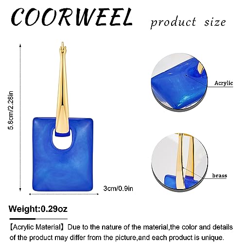 Material: AcrylicMetal type: BrassBack Finding: Hinged HoopEarring design: DangleGem type: No GemstoneDangle Earrings: Royal blue is a classical color of the season. The vibrant color is paired with simple acrylic squares to create dangle earrings that are perfect for shirts and t-shirts to add color and romance to your daily look.Detachable: Two ways to wear one earring. The upper part is a U-shaped hoop, so you can remove the square and wear the hoop alone.Size: Earrings hang 2.3 inches long and 0.9 inches wide. The hoop part is brass material, and the square pendant is acrylic, Lead-Free, and Nickle-Free.Easy to Complement: Our colorful earrings make a statement, go well with your daily outfits, and can be worn for many occasions, such as a date, attending a party, a celebration, and casual days.Service: Your satisfaction is our motivation! If you have any questions or problems with your purchase, please do not hesitate to contact us. Perfect for everyday use. finest materials and excellent craftsmanship ensure long-lasting durability.